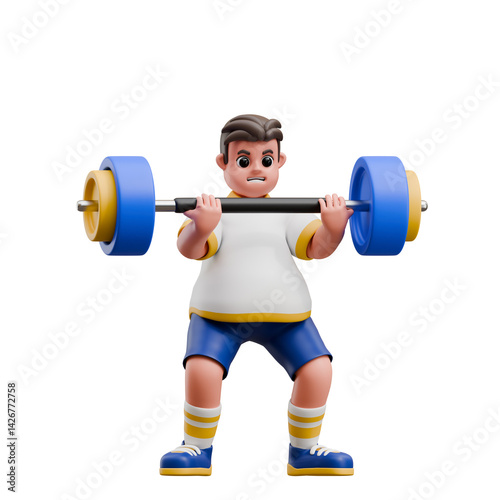 Obraz premium 3D Man Lifting Heavy Barbell with Effort