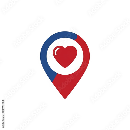 © Vitor, Fototapeta premium 2D Map location pin with heart icon