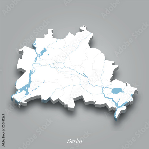© magr80, Fototapeta premium 3D Map of Berlin with Waterways Highlighted