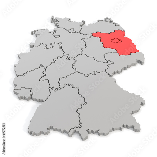 Obraz premium 3D map of germany with focus to berlin and brandenburg