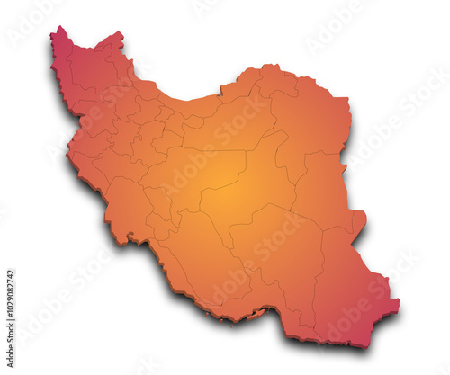 © Akhtar Ansari , Naklejka premium 3d Map of Iran country with color. middle East, ir, Iran country map