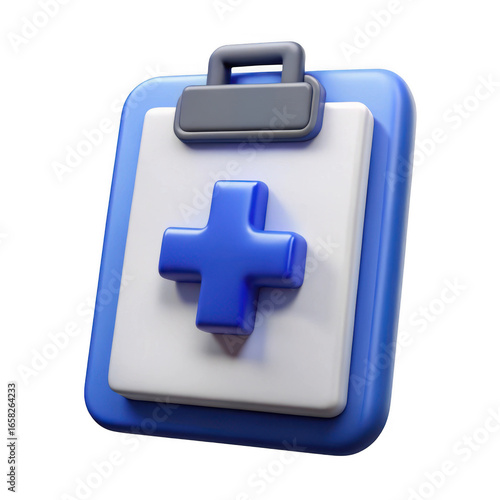 © MstRahima, Obraz premium 3d medical clipboard with blue cross isolated on transparent background