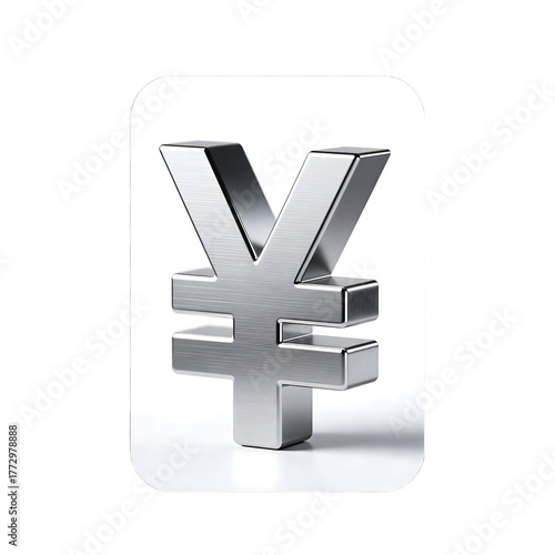 © jubaerutshob, Obraz premium 3D metallic Chinese Yuan (¥) currency symbol against white background, finance and economics concept