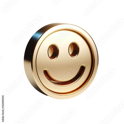 Fototapeta premium 3d metallic gold smiley face icon on a white background isolated PNG