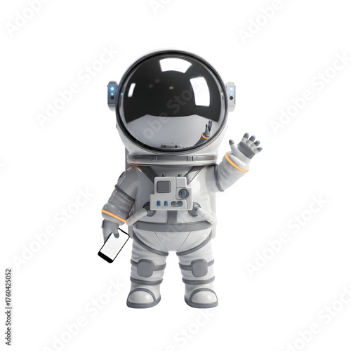 Fototapeta premium 3D Mini Astronaut Waving and Holding Device, Smartphone/Scanner Prop,...