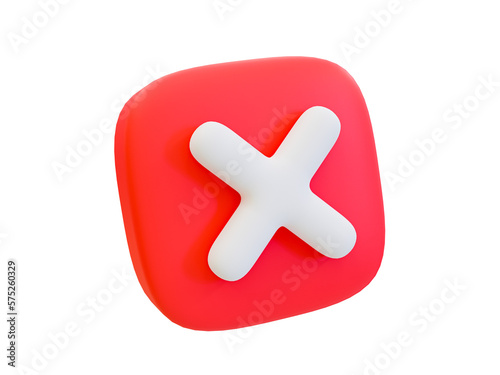 © peerapong, Obraz premium 3d minimal Red wrong mark. cancel icon. rejected, disapproved, no, False, not Ok, wrong Choices. Cross mark icon. 3d illustration.