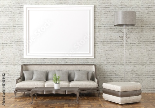 Fototapeta premium 3D Mockup photo frame in Modern interior of living room