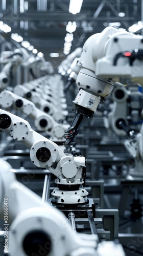 © Chano_1_na, Fototapeta premium 3D Model Abstract Art of Relentless abstract industrial robot assembly line never stopping production