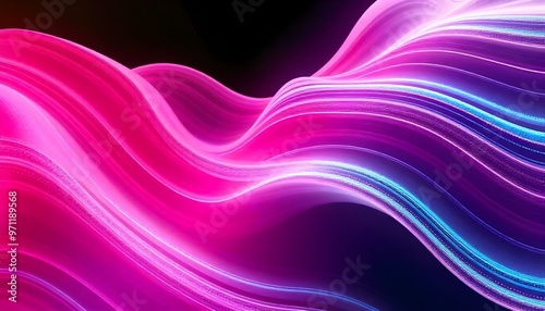 © Anastasiia, Obraz premium 3d model, octane render volumetric,Abstract wavy neon lines in shades of pink and blue, dynamic and textured background