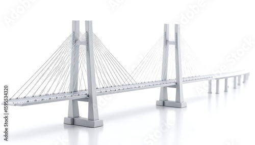 © Santri, Obraz premium 3D model of a cable-stayed bridge
