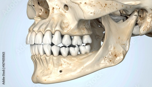 © Cheiraa, Naklejka premium 3D model of a child's skull and teeth, highlighting dental alignment.
