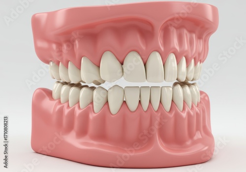 © Herlita, Obraz premium 3D model of a human jaw with healthy teeth against a plain background.