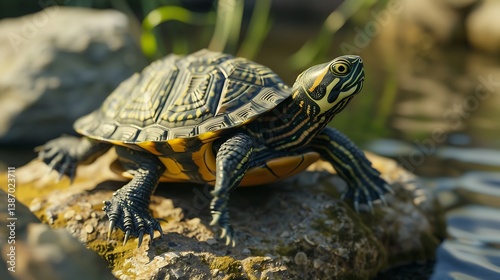 © My Creative Stock, Fototapeta premium 3D model of a multi-colored pond turtle
