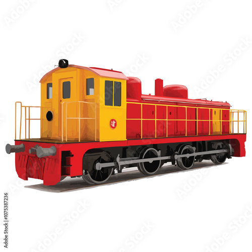 © StockerShawon, Obraz premium 3D model of a red and yellow train engine