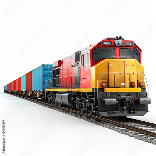 © GenerativeAIpicture, Obraz premium 3D Model of Freight Train with Cargo Containers
