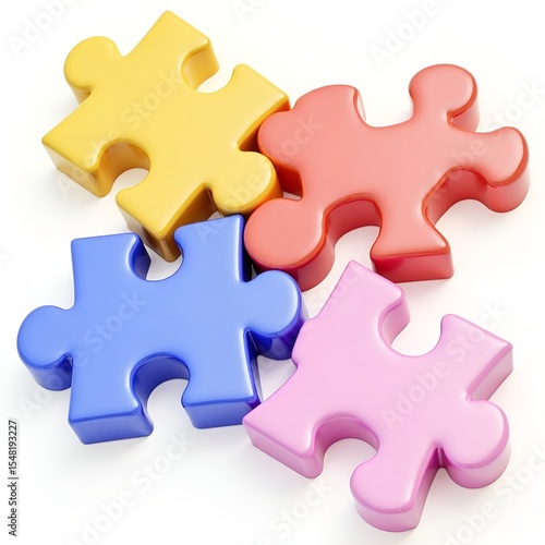Obraz premium 3D Modern Puzzle Pieces Isolated on Transparent Background – Colorful...