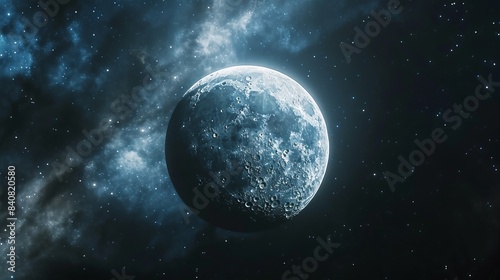 © Yahor Shylau , Obraz premium 3D moon in space.