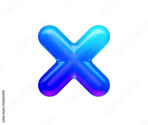 Fototapeta premium 3d Multiplication symbol with a glossy neon blue gradient and reflective...