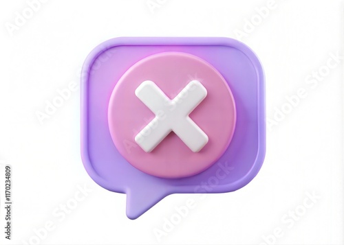 Obraz premium 3D Negative or Decline Cross Cancel Icon - Speech Bubble Sign, Symbol Concept