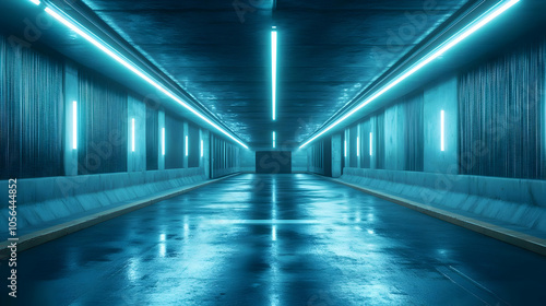 © Clocken, Fototapeta premium 3d Neon Blue Light Concrete Tunnel Background