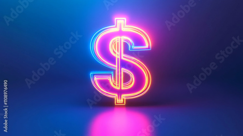 © Sahraya, Fototapeta premium 3d neon glowing Dollar on cyan background. Set for design presentations.