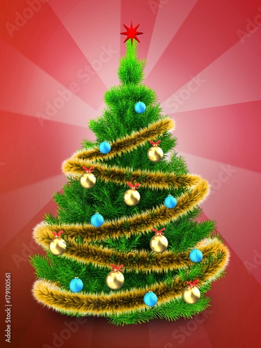 © Maxim_Kazmin, Fototapeta premium 3d neon green Christmas tree over red