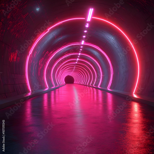 Naklejka premium 3D Neon Tunnel Pink Lights Reflections Abstract Background