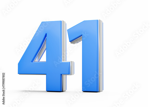Obraz premium 3D Number 41 Forty One Made Of Blue Body With Silver Outline On White Background 3D Illustration