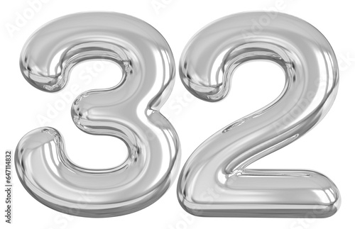 © Chetra168, Naklejka premium 3d number 32 - silver number