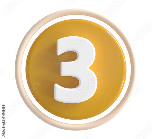 © Chetra168, Obraz premium 3d number 3 yellow icon