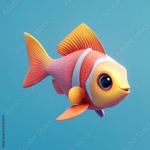 © Rjdp, Naklejka premium 3D Ocean Fish Icon: Marine Life in the Deep Sea Illustration Logo
