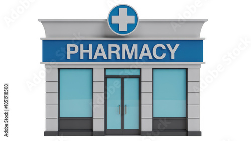 © eiza, Obraz premium 3D of a pharmacy storefront 3D building architecture isolated on a transparent background