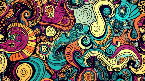 Obraz premium 2d of ethnic colorful doodle texture with a seamless calming pattern...