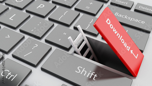 © Mego-studio, Fototapeta premium 3d Open "download" button with ladder coming out