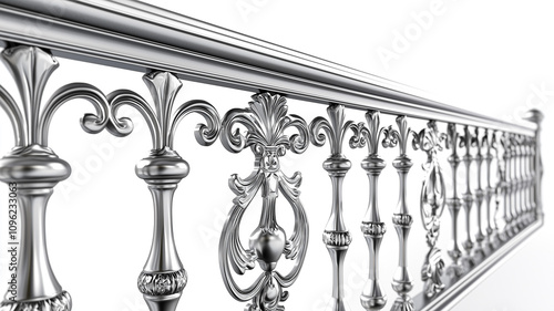 Obraz premium 3D Ornate Steel Railing with Elaborate Designs, Transparent Background for Sophisticated Decor..