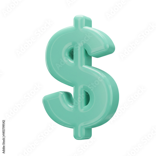 Fototapeta premium 3D Pale Green Dollar Sign Currency Money Finance Wealth Investment Savings US Dollar Symbol