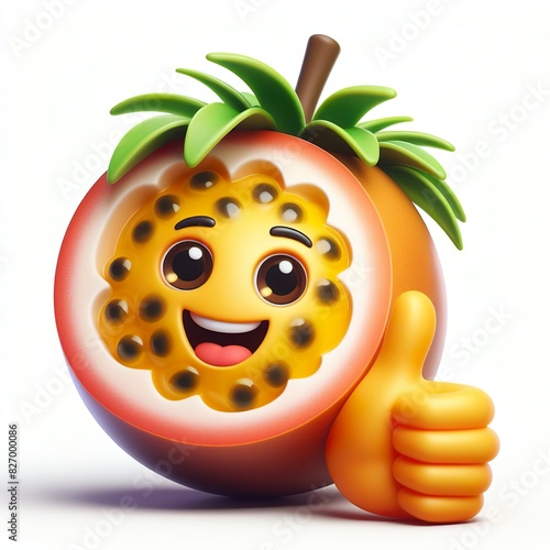 Obraz premium 3D Passion fruit emoji thumbs up on a white background