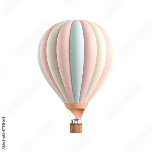 © Sania, Naklejka premium 3d pastel hot air balloon with gentle color palette floating in soft white space, symbolizing freedom, travel dreams, childhood imagination, and minimal artistic adventure concept