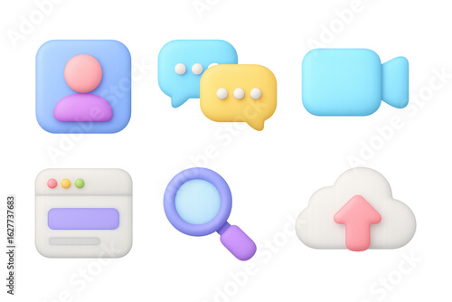 © Maureen, Fototapeta premium 3d pastel icons set: social media and technology elements