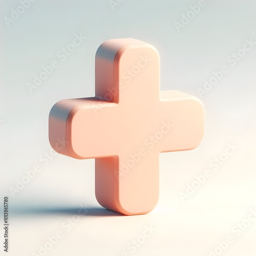 Obraz premium 3D Peach-Colored Plus Sign on a Minimalist Backdrop