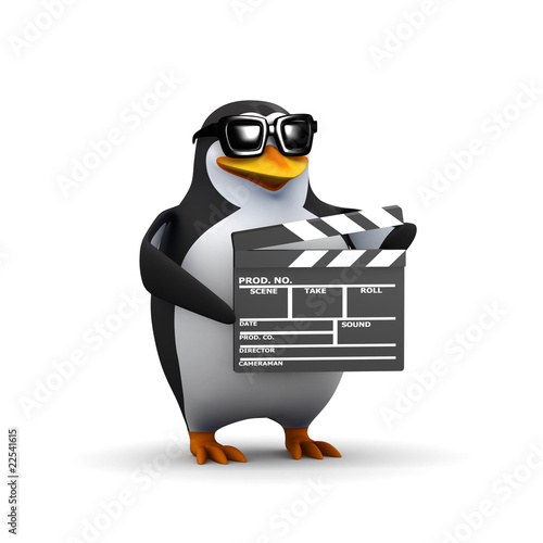 © Steve Young, Fototapeta premium 3d Penguin with clapper board
