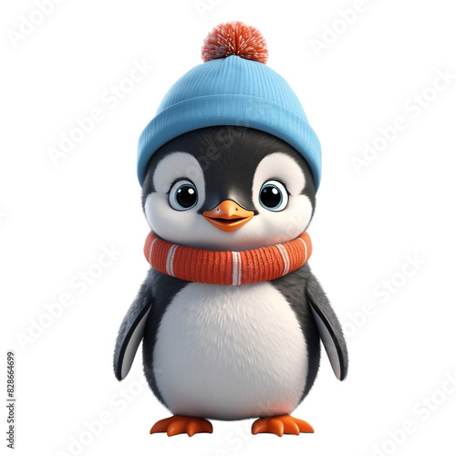 © Phattaradanai, Naklejka premium 3d penguin with hat