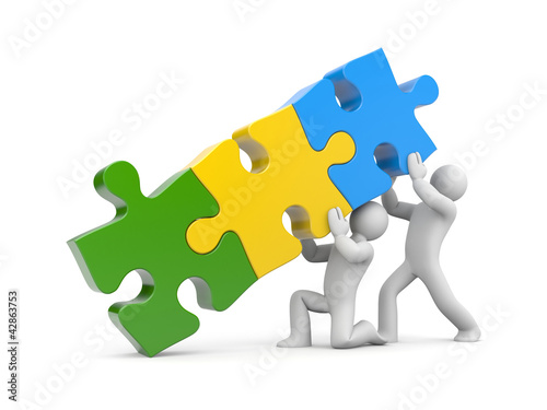 Obraz premium 3d people with stack of puzzle