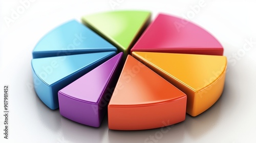 Obraz premium 3D pie chart with colorful segments, representing data visualization and statistical analysis.
