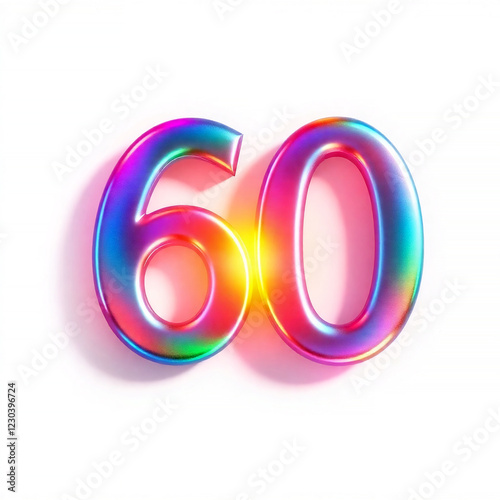 © Ann, Obraz premium 3d pink colorful painting symbol sixty, 60, on colored background, isolated.
