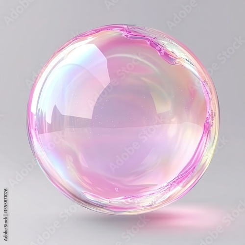 Obraz premium 3d pink soap ball. Realistic rainbow water bubble on transparent background....