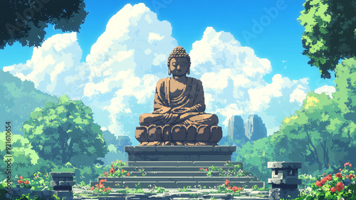 © WINNN, Fototapeta premium 2d pixel art of buddha statue