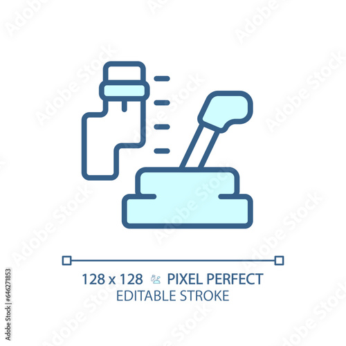 Fototapeta premium 2D pixel perfect editable blue car gear box icon, isolated vector, thin line...