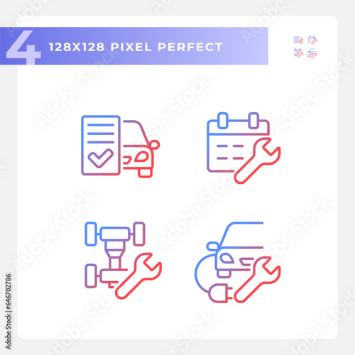 © IMG visuals icons, Fototapeta premium 2D pixel perfect set of gradient icons representing car repair and service, thin line illustration.