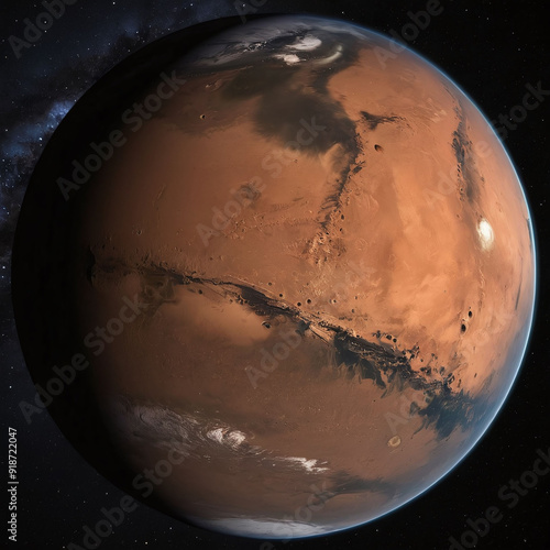 © vian, Naklejka premium 3D Planet Mars isolated in dark stary array galaxy solar system red planet